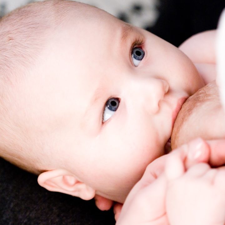 Beim Saugen bewegen sich der Unterkiefer und oft auch die Ohren rhythmisch mit. Diese sichtbaren Bewegungen sind ein Zeichen für aktives, wirksames Saugen und Milchtransfer.